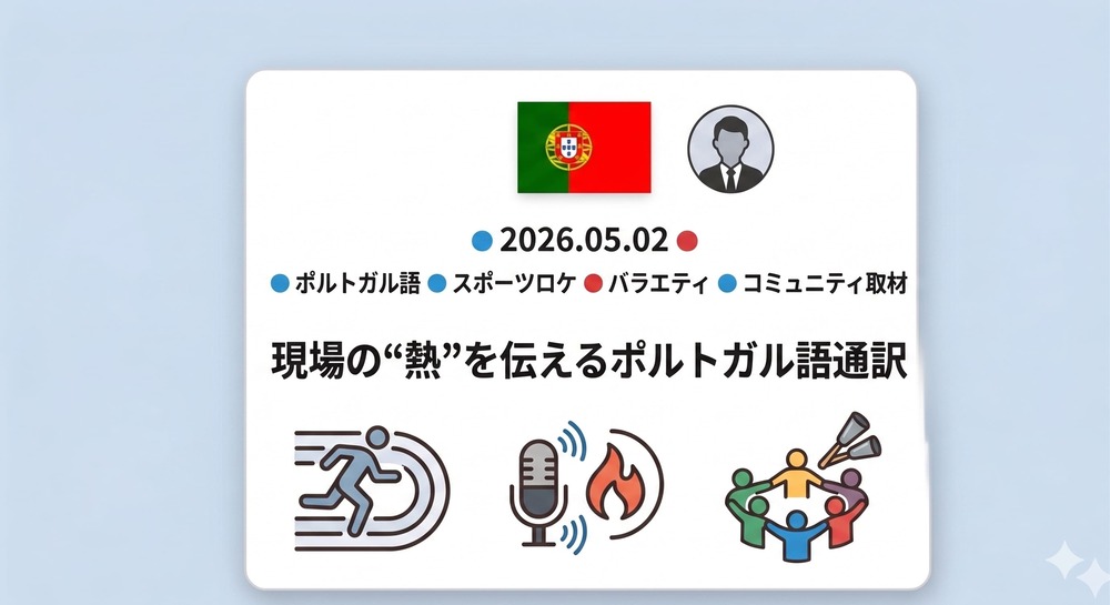 スポーツの華やかな現場でも、地域に根差したコミュニティの取材でも、求められるのは単なる言葉の置き換えではなく、その場にある熱量をきちんと受け止めて伝えることだと思っています。ポルトガル語を通して、さまざまな現場の“熱”に触れられることが、この仕事の大きな魅力です。
